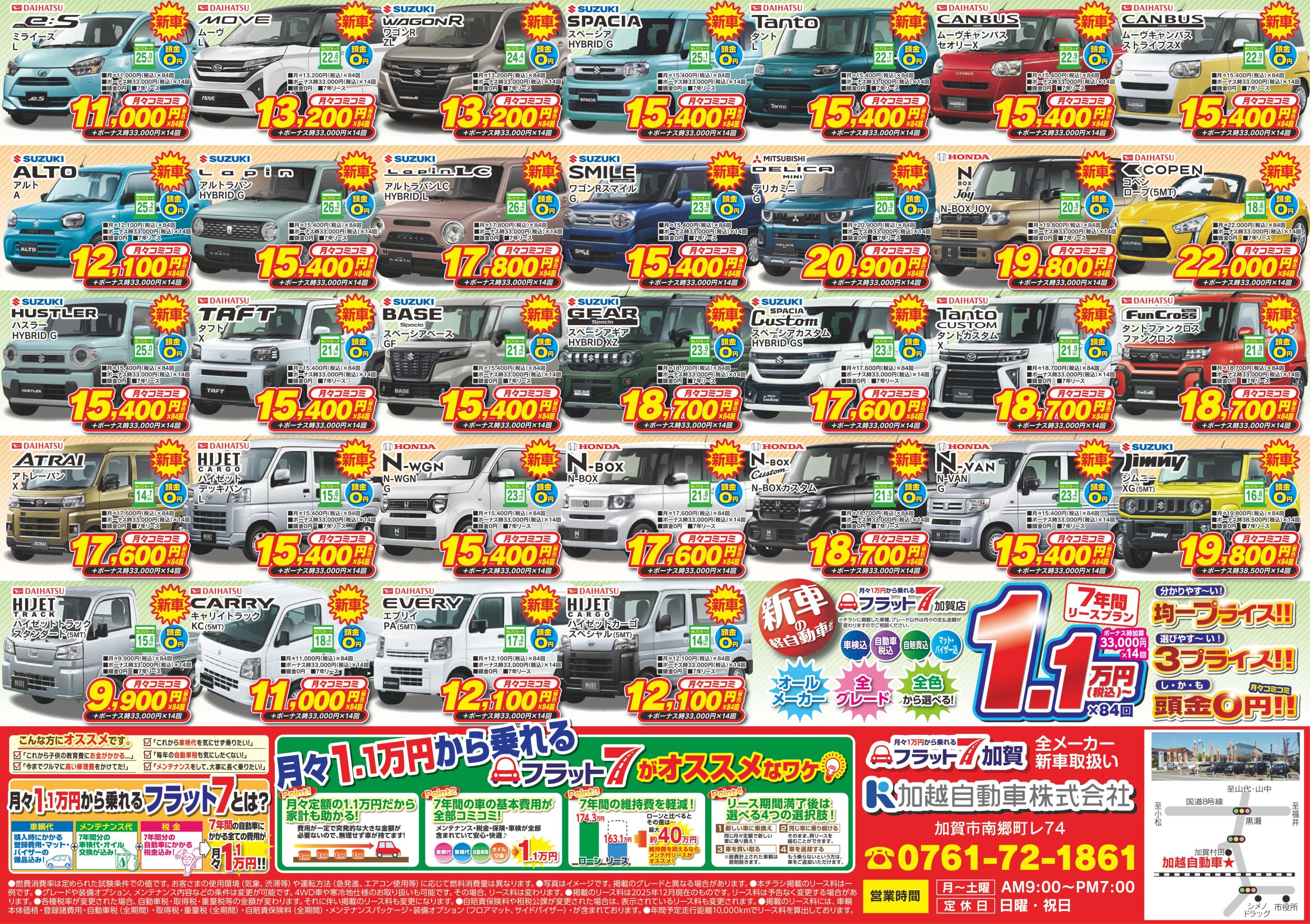 石川県加賀市南郷町レ74 TEL:0761-72-1861 - 営業時間
